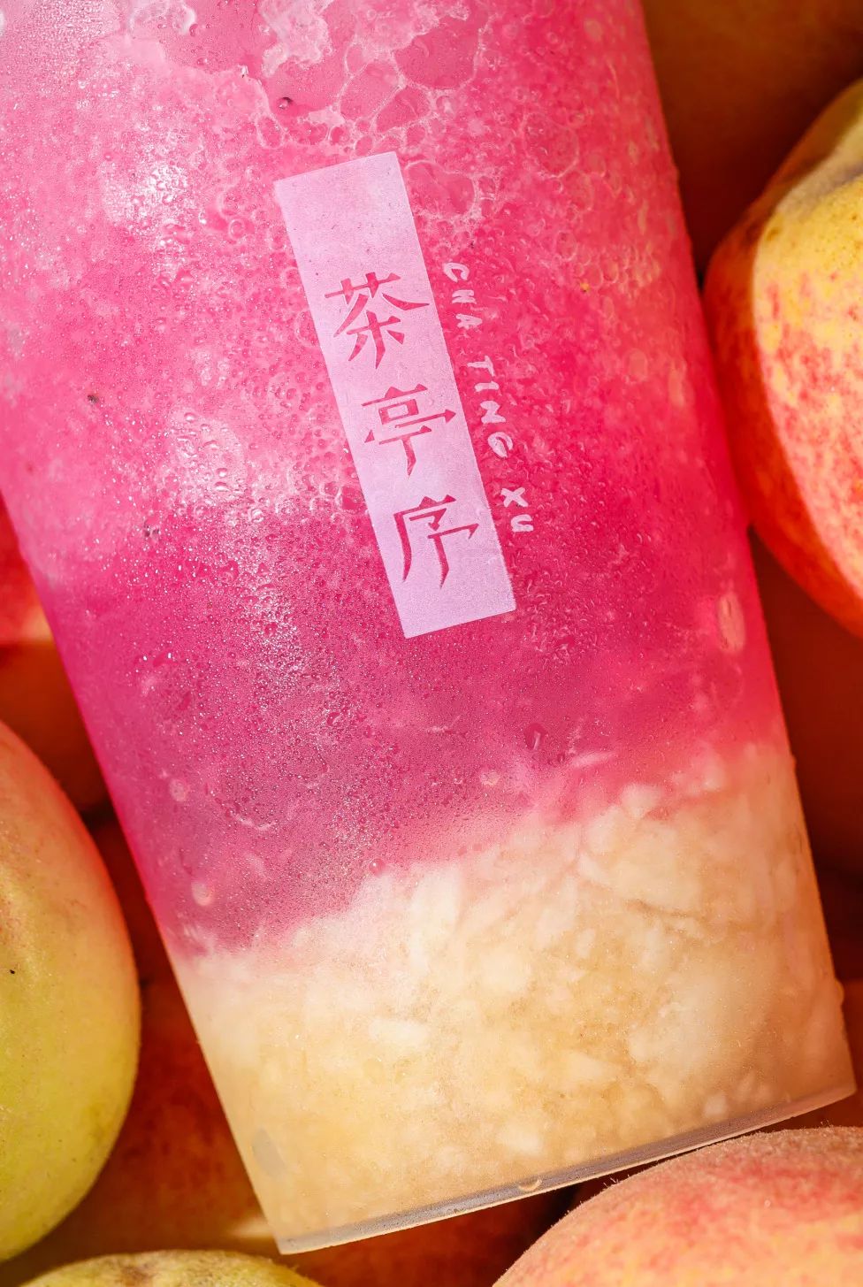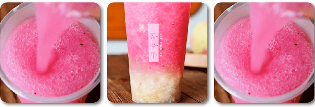 底下新鲜桃肉都是现点现切,遇到空气就容易氧化了,所以建议尽快饮用!白桃的香气沁入心底,加上含桃花酿的水蜜桃冰沙,口感舒爽绵密,一种少女初恋般的滋味油然而生。