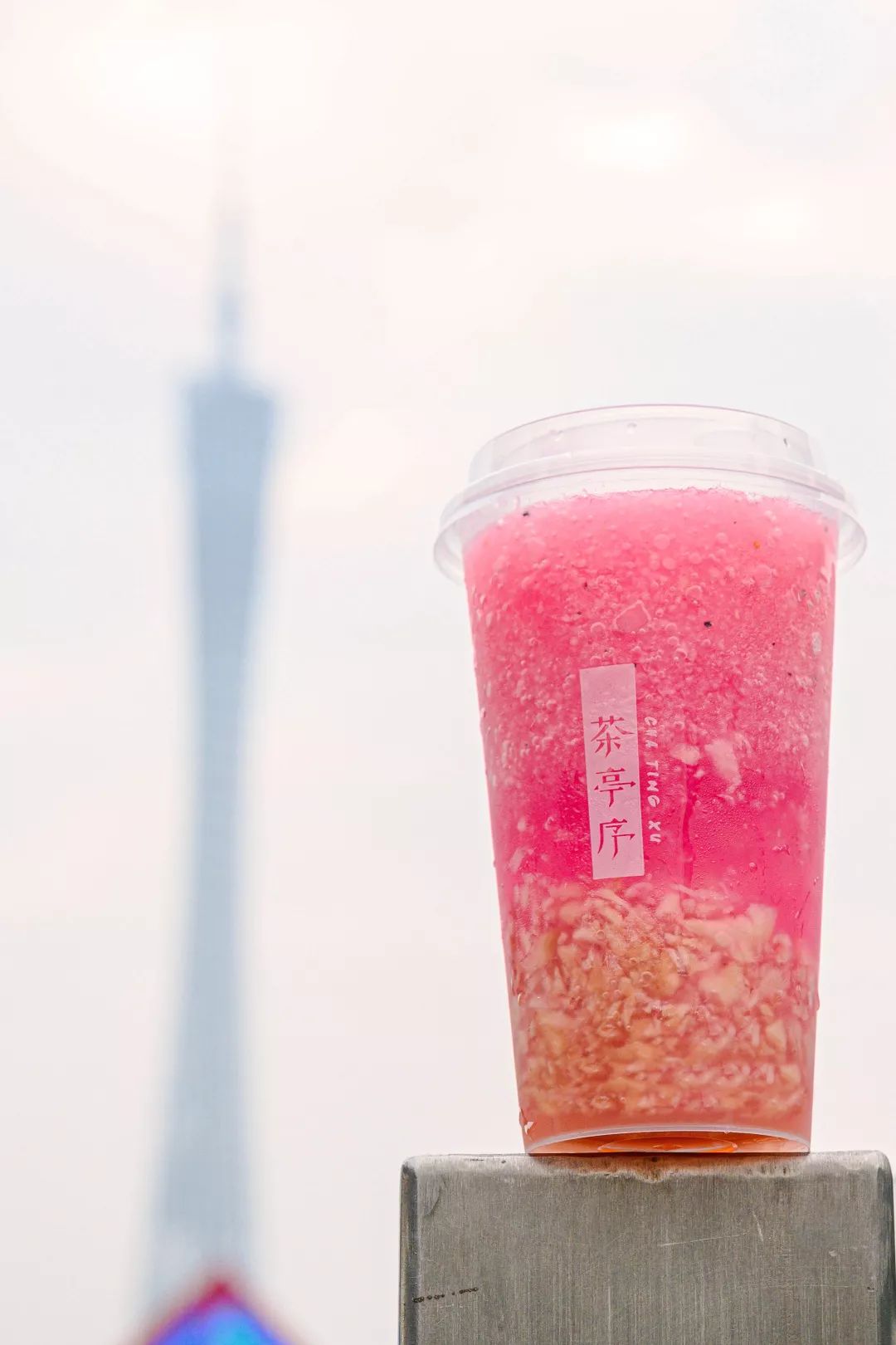 白色与粉色的神仙搭配,看起来颜值颇高又异常温柔。果肉、寒天、冰沙的层层渐变,简直就是独特的存在,从颜值上就赢了。随手一拍,爱了爱了!