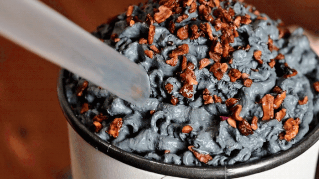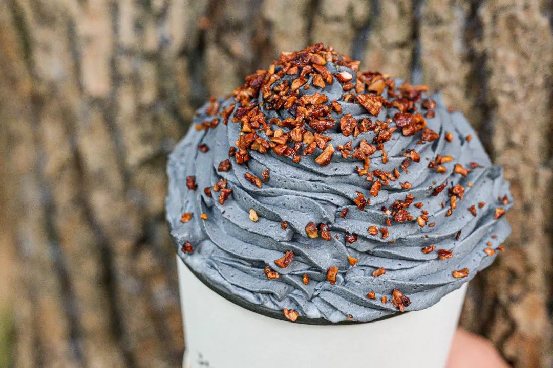 灰色奶油雪顶用的是天然动物淡奶油,口感松软不会太腻。相对于植物淡奶油,它稳定性相对差一点,所以记得赶紧先拍个照啦!所有雪顶都是现打,记得要先尝一下先吃混着碧根果的淡奶油,然后大力猛吸奶茶,把味觉完全交给它。