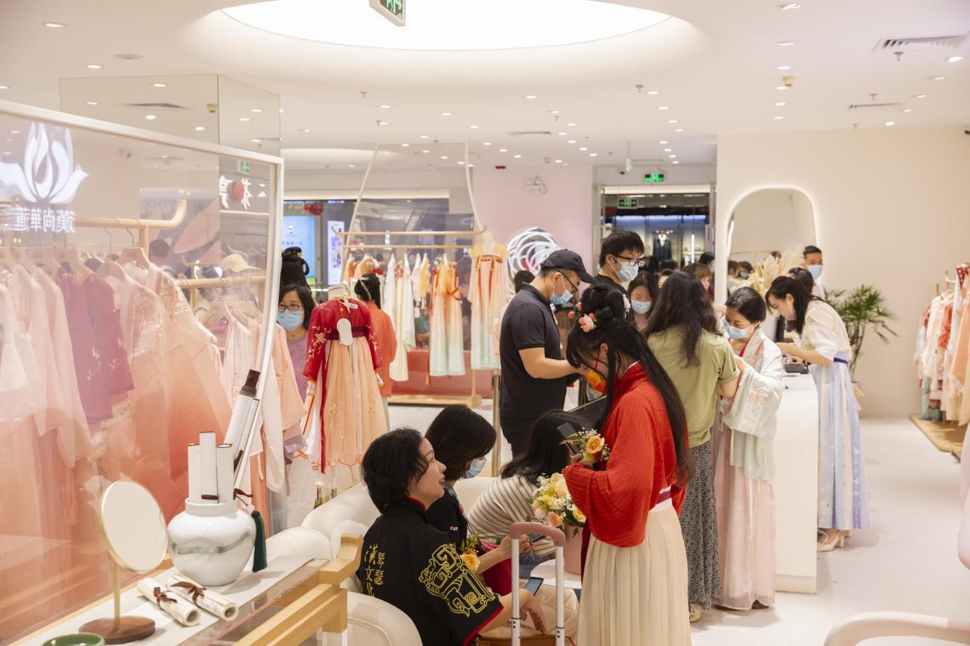 国庆长假期间,由茶亭序和汉尚华莲联合推出的“汉美学旗舰店”正式开业,吸引了大批年轻顾客探店打卡。与此同时,这两个品牌的联名合作在业内外均引起了广泛的关注。一时间,关于国风的话题再度成为热门。