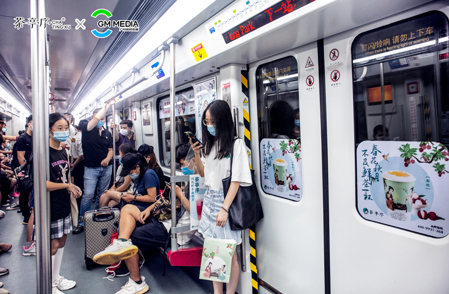茶亭序为促使品牌曝光再上一个新高度,包揽了地铁品牌列车广告、站台超级灯箱广告、品牌通道广告等,覆盖全线站点,网罗来往乘客,多种媒体组合,强烈视觉冲击,让你的视觉“无处可逃”!