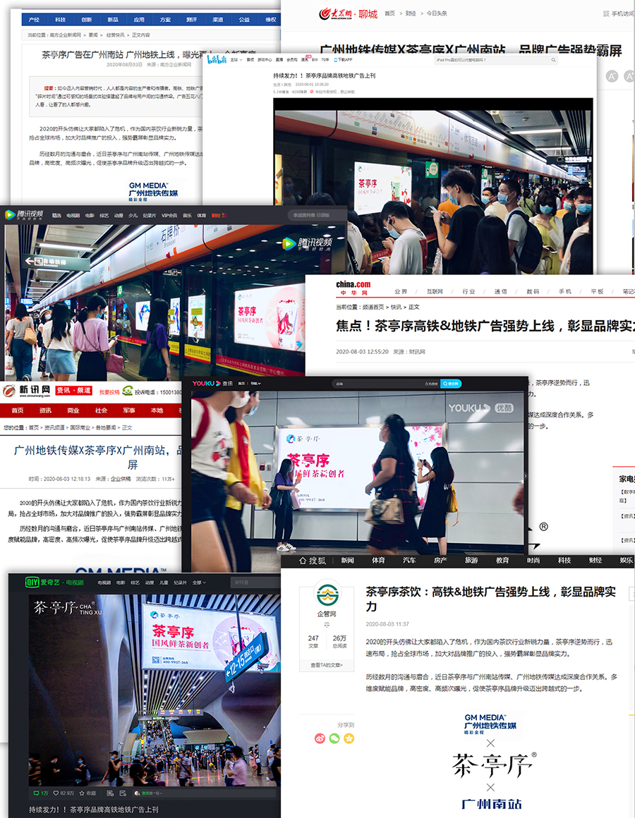 历经数月的沟通与磨合,茶亭序与广州南站传媒、广州地铁传媒达成战略合作伙伴关系,再掀品牌风暴,重资投放高铁&地铁黄金广告位!多维度赋能品牌,高密度、高频次曝光,促使茶亭序品牌升级迈出跨越式的一步。